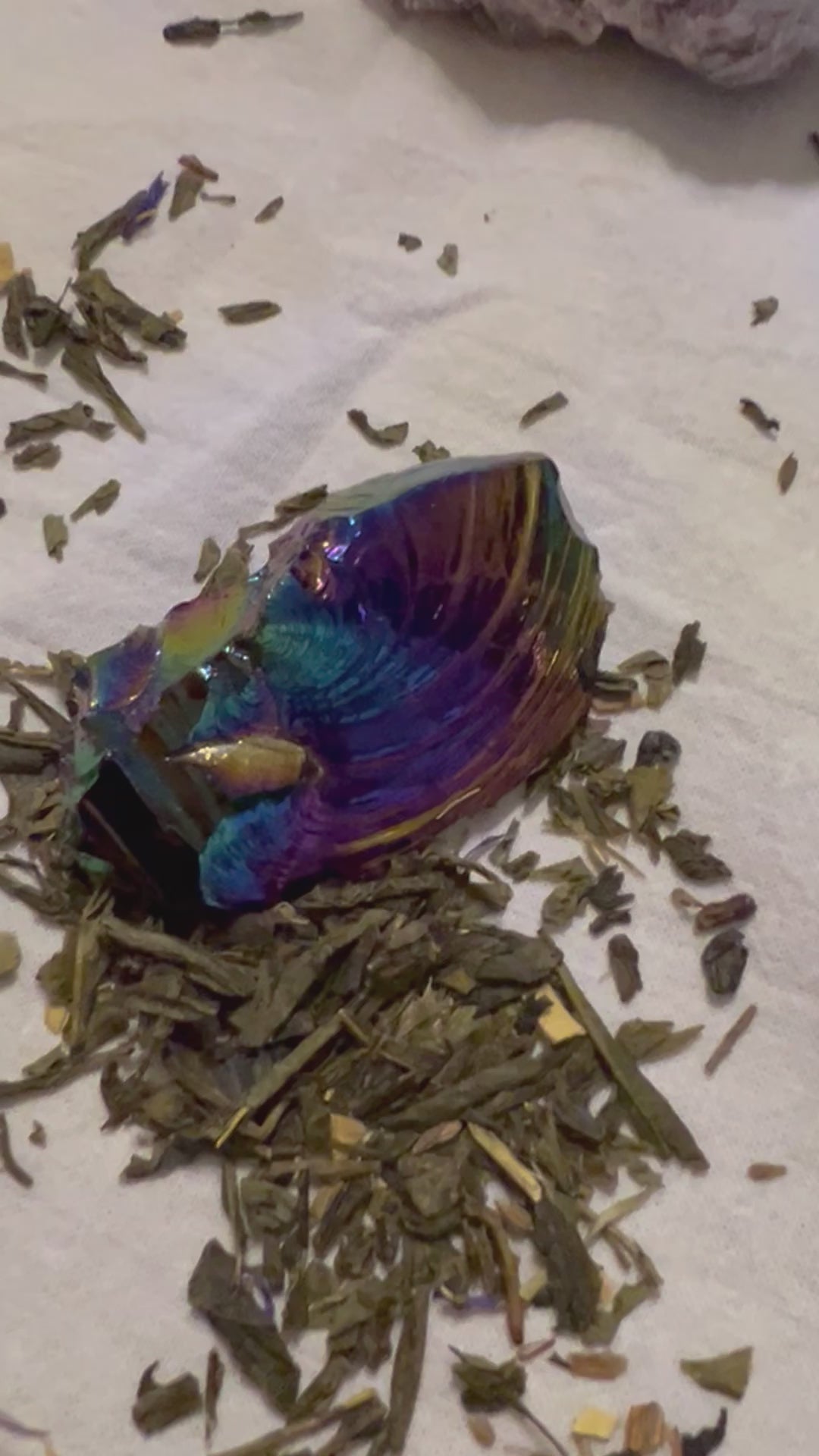 Achtung! Aura-Obsidiane können manchmal "gebraucht" aussehen, da kleine Ritze oder Einkerbungen sichtbar sind. Dies liegt daran, dass der Stein so geschnitten/ gebrochen wurde.